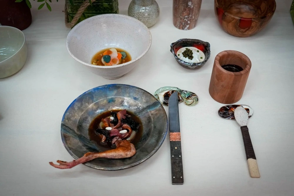 En este sentido, el chef aseguró que “lo mismo pasa con la cuchillería y la vajilla. Podemos hacer una experiencia única y diferente utilizando vajillas y cuchillos artesanos y únicos porque también en estas piezas está el valor añadido a la propuesta gastronómica”.